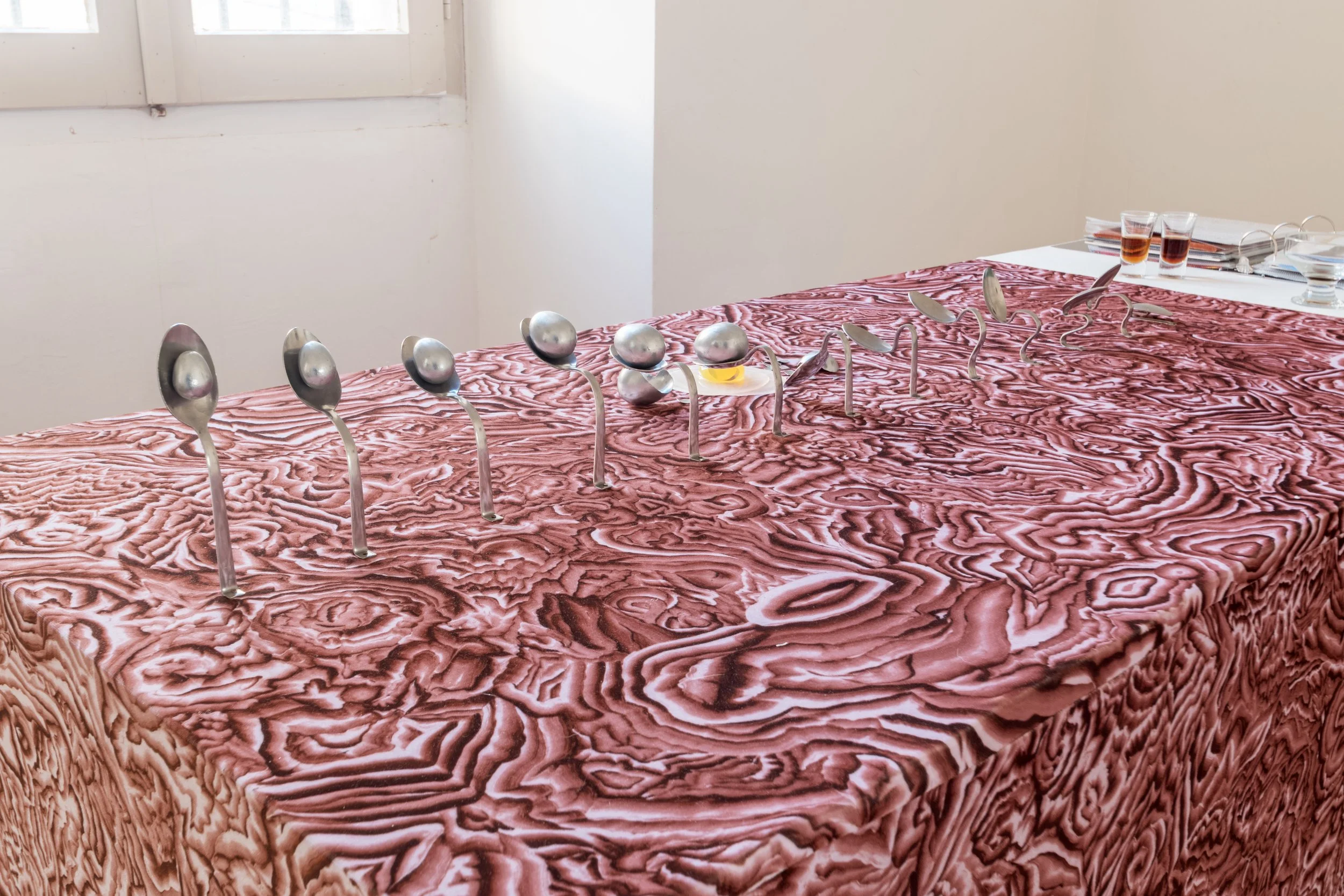 Water Illusion, Hair gel encased in vinyl sheets with inkjet print, 2014